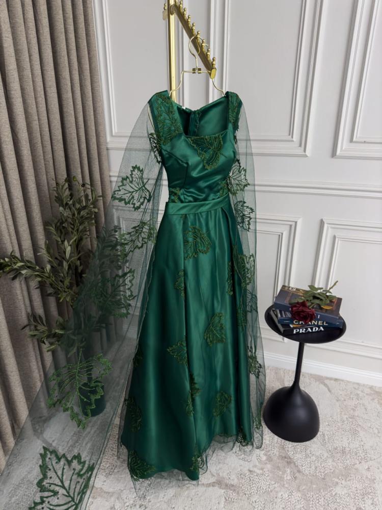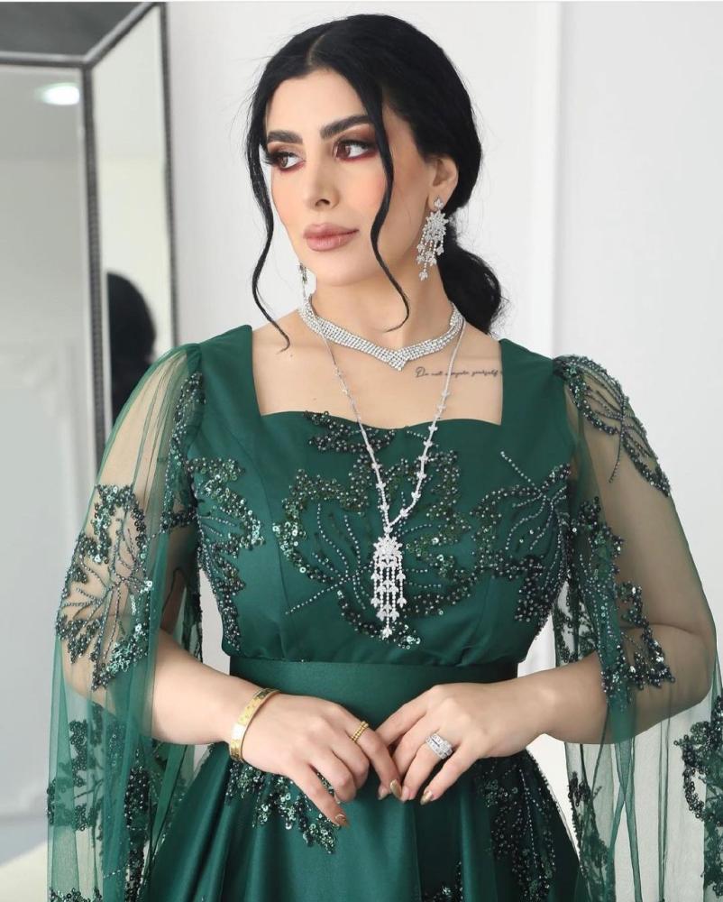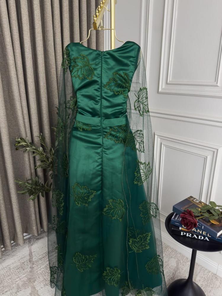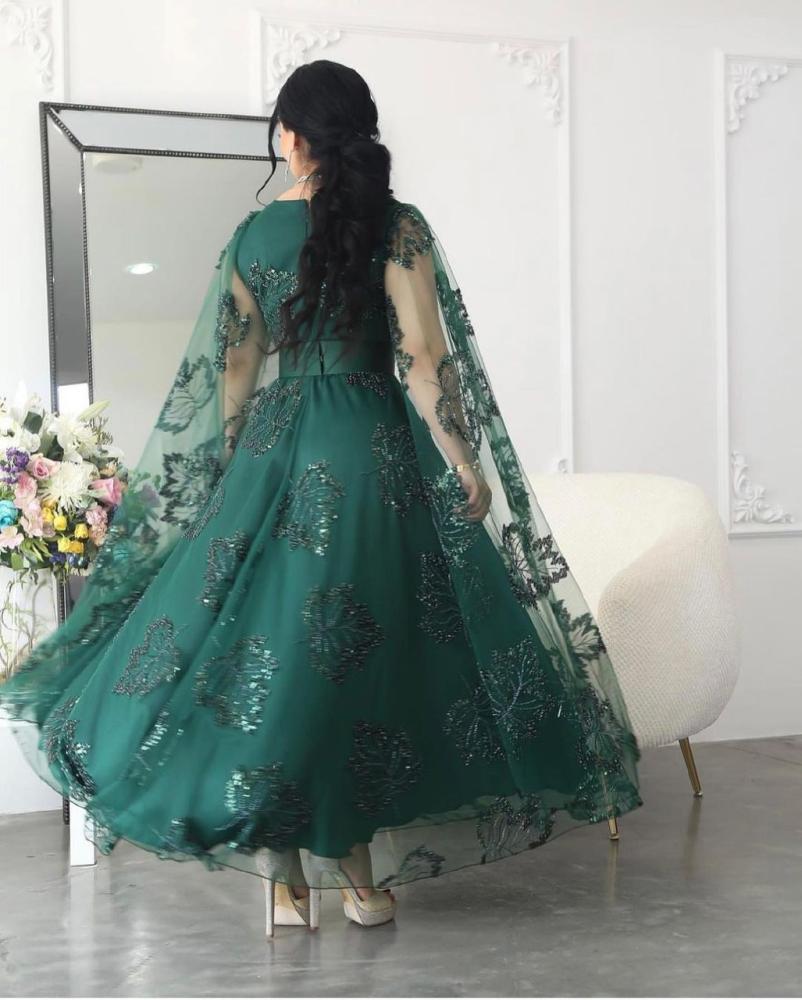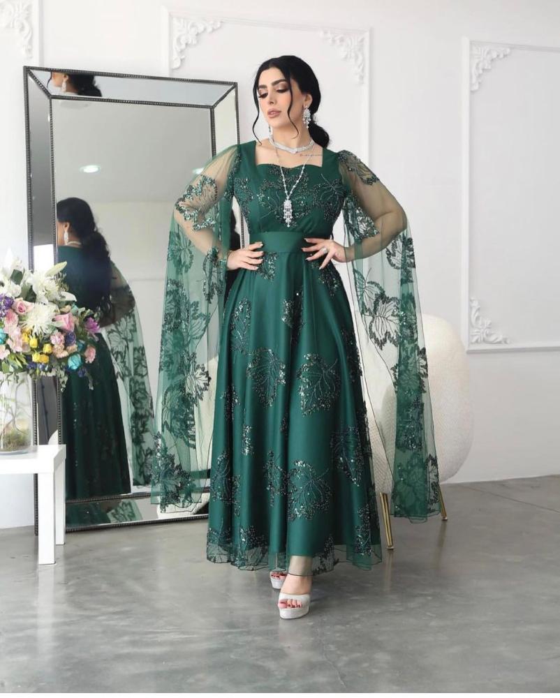 فستان سهره تفته وتل فرنسي المزين بالتطريز كمبيوتر